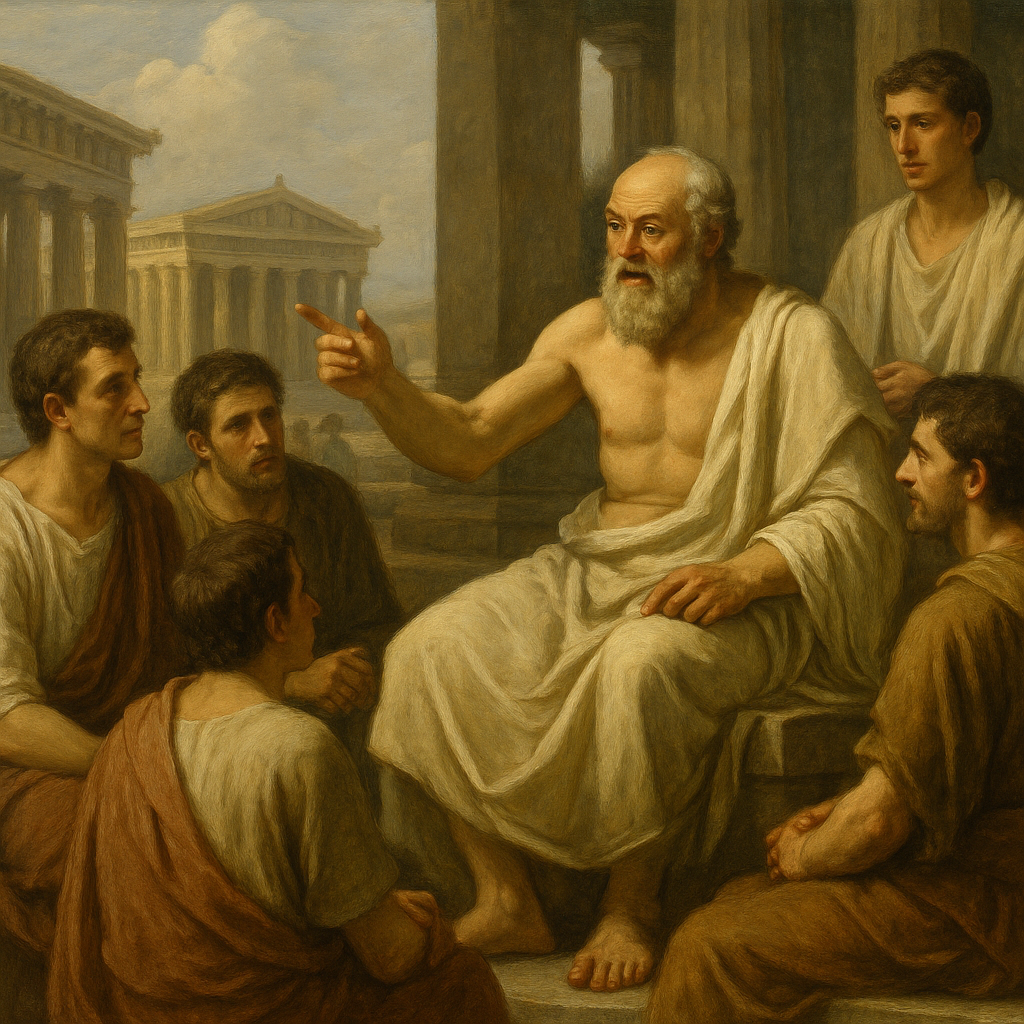 우리는 날마다 수많은 질문을 주고받으며 살아간다. 그러나 그 질문 중에는 삶의 본질을 묻는 깊은 사유가 담긴 것들이 얼마나 될까? 오늘날의 사회는 정답을 빠르게 찾아내는 데 집중하는 경향이 강하다. 수많은 정보가 넘쳐나는 시대에서 사람들은 '무엇을 아는가'보다 '어디서 정보를 찾는가'에 더 많은 관심을 두고 있다. 그러나 철학은 전혀 다른 길을 제시한다. 철학은 이미 주어진 정답을 암기하는 것이 아니라, 답 자체를 의심하고, 질문의 형식을 근본적으로 뒤집는 학문이다. 그리고 그 철학의 원형을 제시한 인물이 바로 고대 아테네의 철학자, 소크라테스이다. 소크라테스는 스스로 글을 남기지 않았지만, 그의 제자인 플라톤을 통해 수많은 대화를 남겼다. 그 대화들은 단순한 지식의 전달이 아니라, 상대방이 스스로 '무지'를 자각하도록 유도하는 질문의 연속이었다. 그는 자칭 지혜롭다고 자부하는 사람들에게 질문을 던졌고, 결국 그들이 얼마나 모르는지를 스스로 깨닫게 만들었다. 그는 스스로를 '산파'에 비유하였다. 산파가 아기를 낳는 데 도움을 주듯, 그는 사람들 마음속에 이미 존재하는 생각을 '출산'하도록 도왔던 것이다. 이 질문법은 단순한 말장난이 아니라, 인간의 지적 겸손을 전제로 하는 깊은 사유의 기초였다. 우리가 철학을 시작하는 첫걸음은 '나는 무엇을 알고 있으며, 무엇을 모르고 있는가?'라는 질문으로부터 비롯된다. 그리고 이 질문을 끝없이 던진 자가 바로 소크라테스였다.